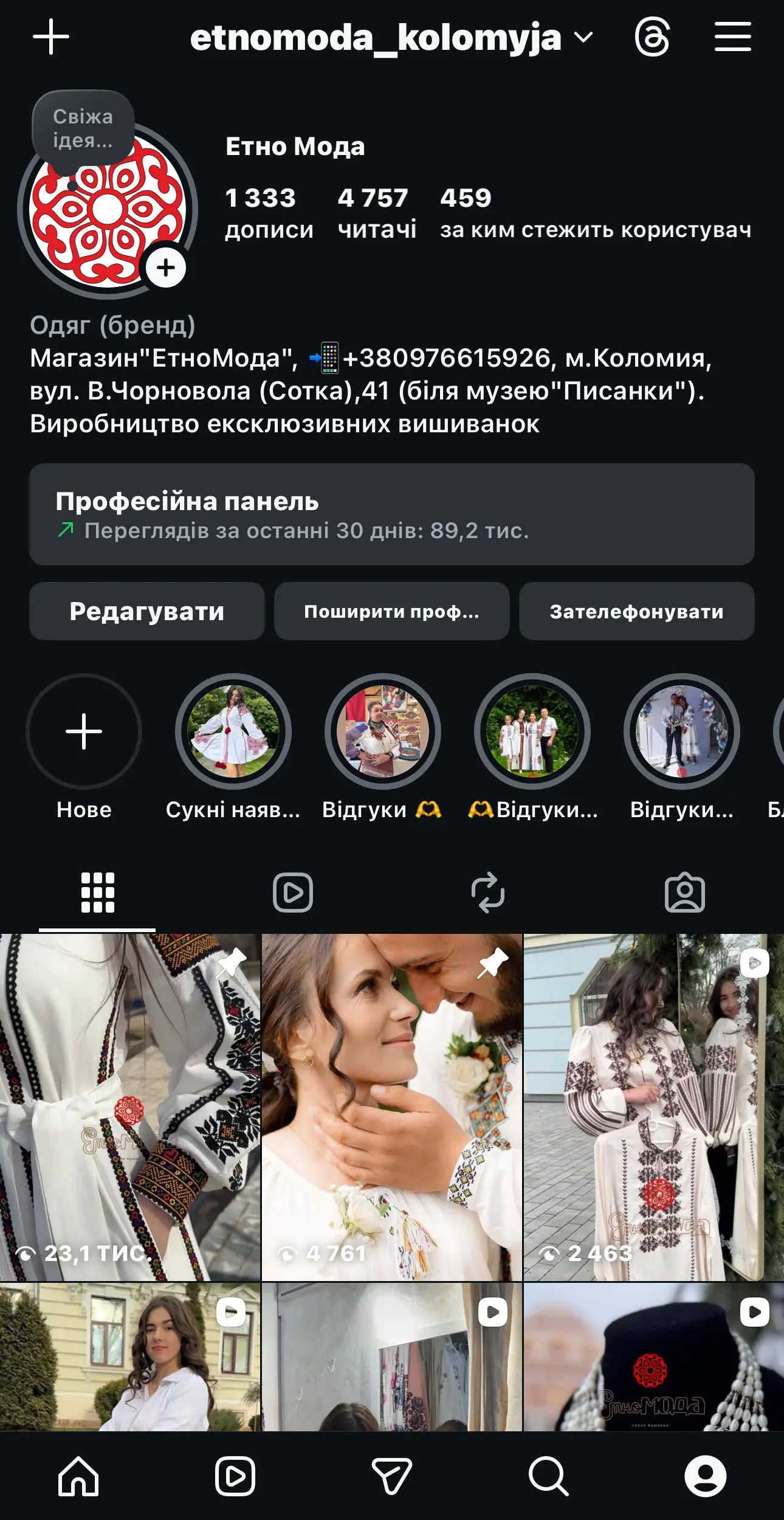 Вишита сорочка — це давній, традиційний одяг українців, у якому закарбовано генетичний код нації. Однак сьогодні вишиванка — це не лише пам'ятка минулого, вона стрімко та гармонійно влилася в сучасний динамічний гардероб. Вишивка прикрашає не тільки класичні блузи, а й вишукані сукні, стильні футболки, спідниці, худі, туніки, корсети та аксесуари до них, ми пропонуємо повний спектр етно-виробів: автентичні кептарі, манішки, опинки, запаски, майстерно гачковані пояси та аксесуари... Для нашої команди важливо, щоб традиція жила у серцях найменших, тому ми підготували великий вибір дитячих вишиванок. Також у нас ви знайдете вишукані рушники, скатертини та намисто, що наповнять вашу оселю справжнім українським духом. У нас ви знайдете як класичні, так і сміливі сучасні моделі, що зроблять ваш день неповторним — чи то гучне весілля, чи затишний день народження, чи просто вечірній похід у кіно. Вишиванка від «ЕтноМоди» — це ваш особливий стиль на щодень! Ми переконані, що автентика може бути комфортною. Наш досвід — це понад 15 років відданості справі, зберігаючи баланс між інноваціями та автентикою. В асортименті «ЕтноМоди» представлені як деталізовані машинні візерунки, так і безцінні вироби ручної роботи. Ми особливо пишаємося відродженням рідкісних технік, таких як «низинка», що перетворює кожну сорочку на справжній живопис. Майстерно виконуємо вишивку гладдю та рахувальною гладдю, зокрема у шляхетному стилі «білим по білому», де гра фактур створює ефект витонченої розкоші. Також ми плекаємо традиції вишивки хрестиком та створюємо повітряне, майже невагоме мережкування, що додає виробам особливої делікатності. В «ЕтноМоді» кожен — від немовляти до дорослого — знайде те, що відгукнеться в душі та стане улюбленою річчю на довгі роки!