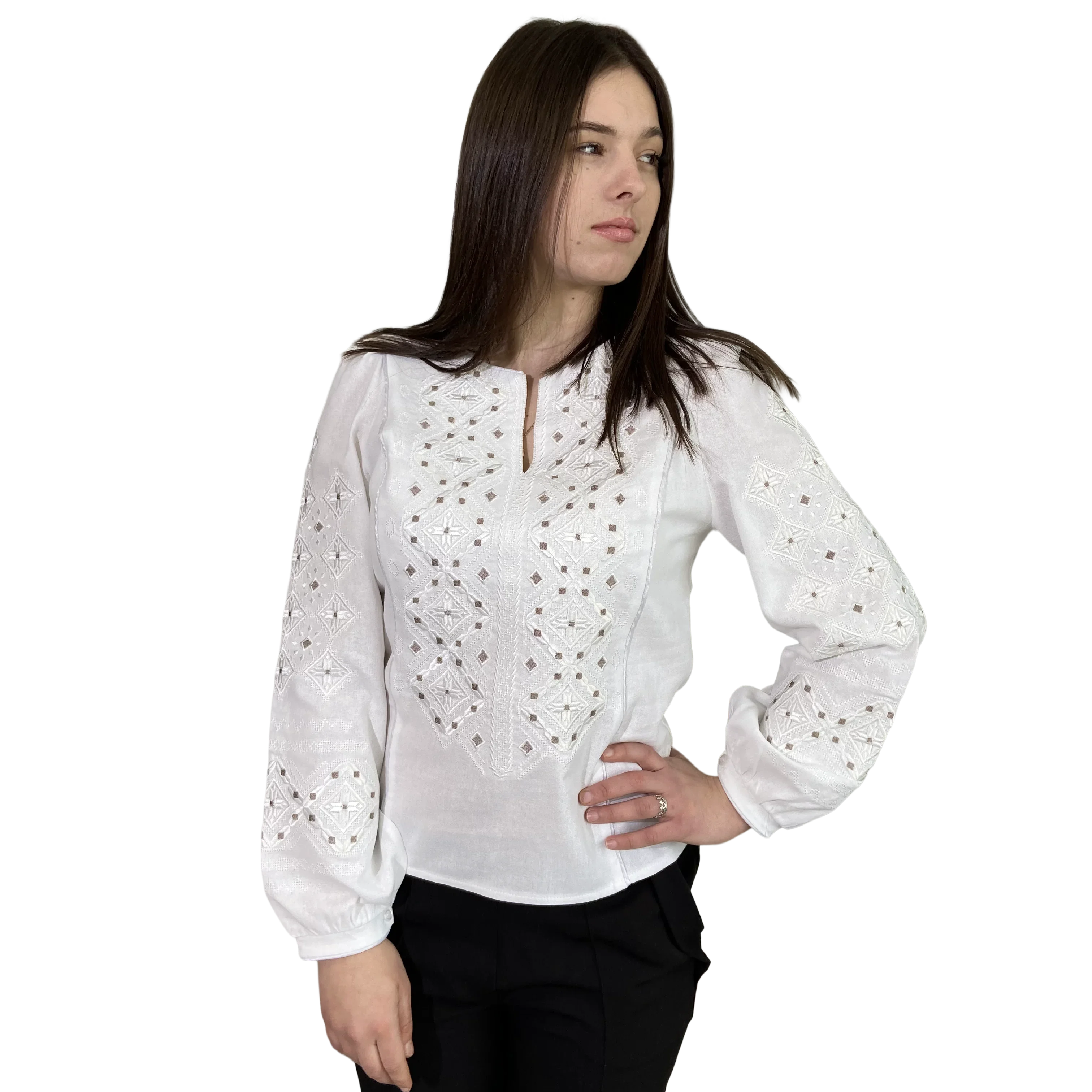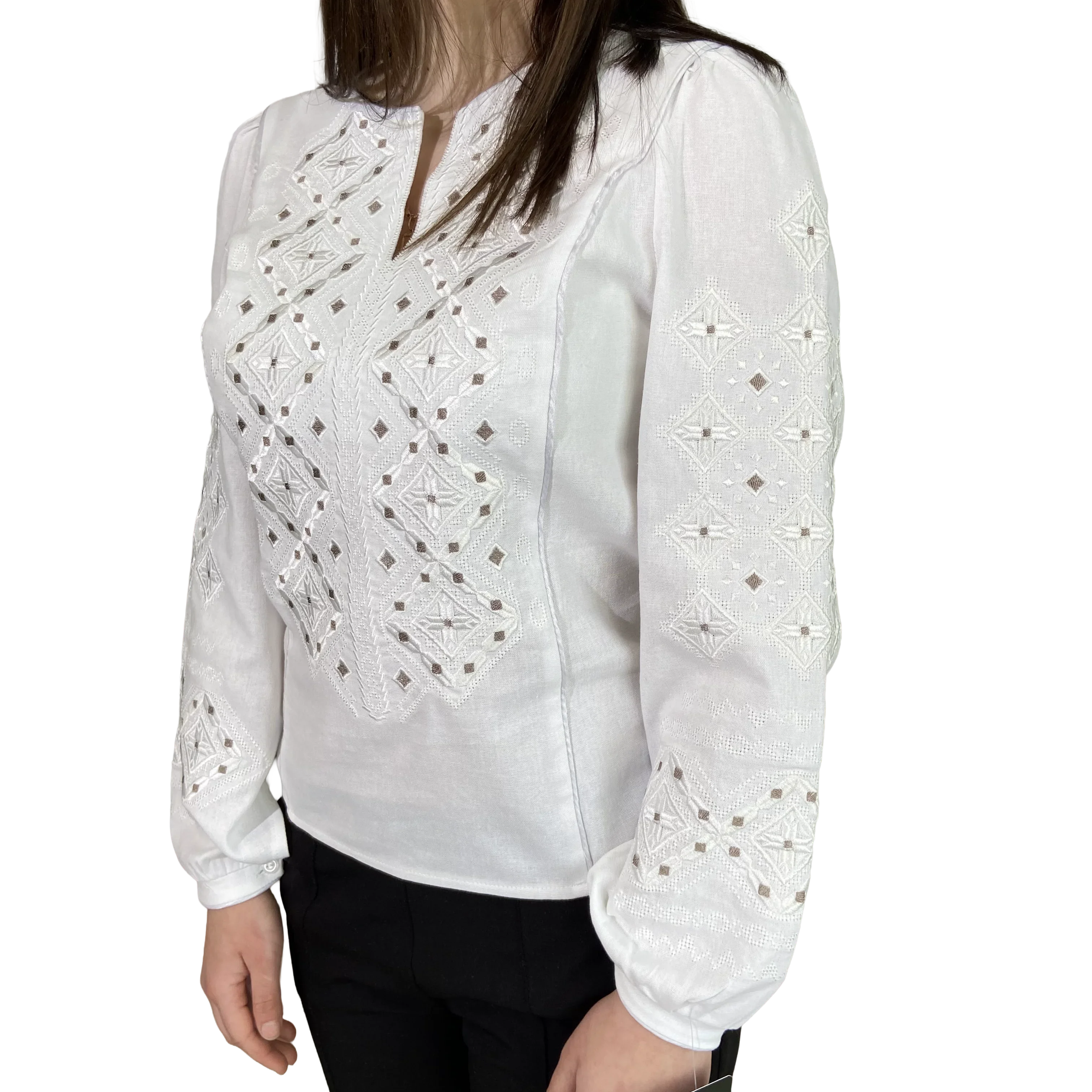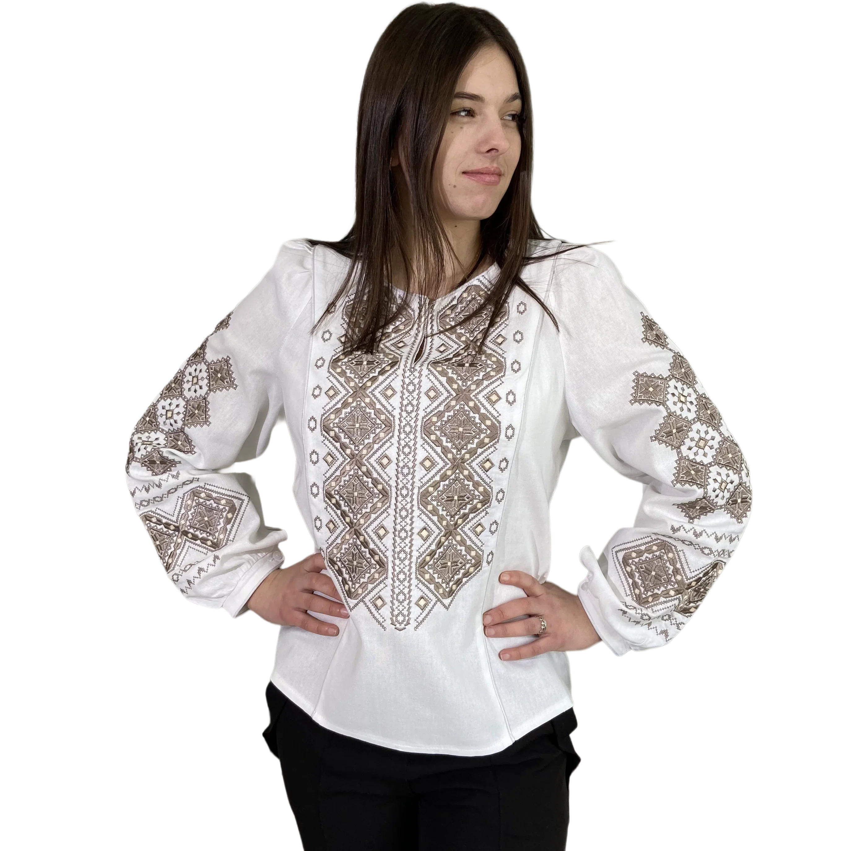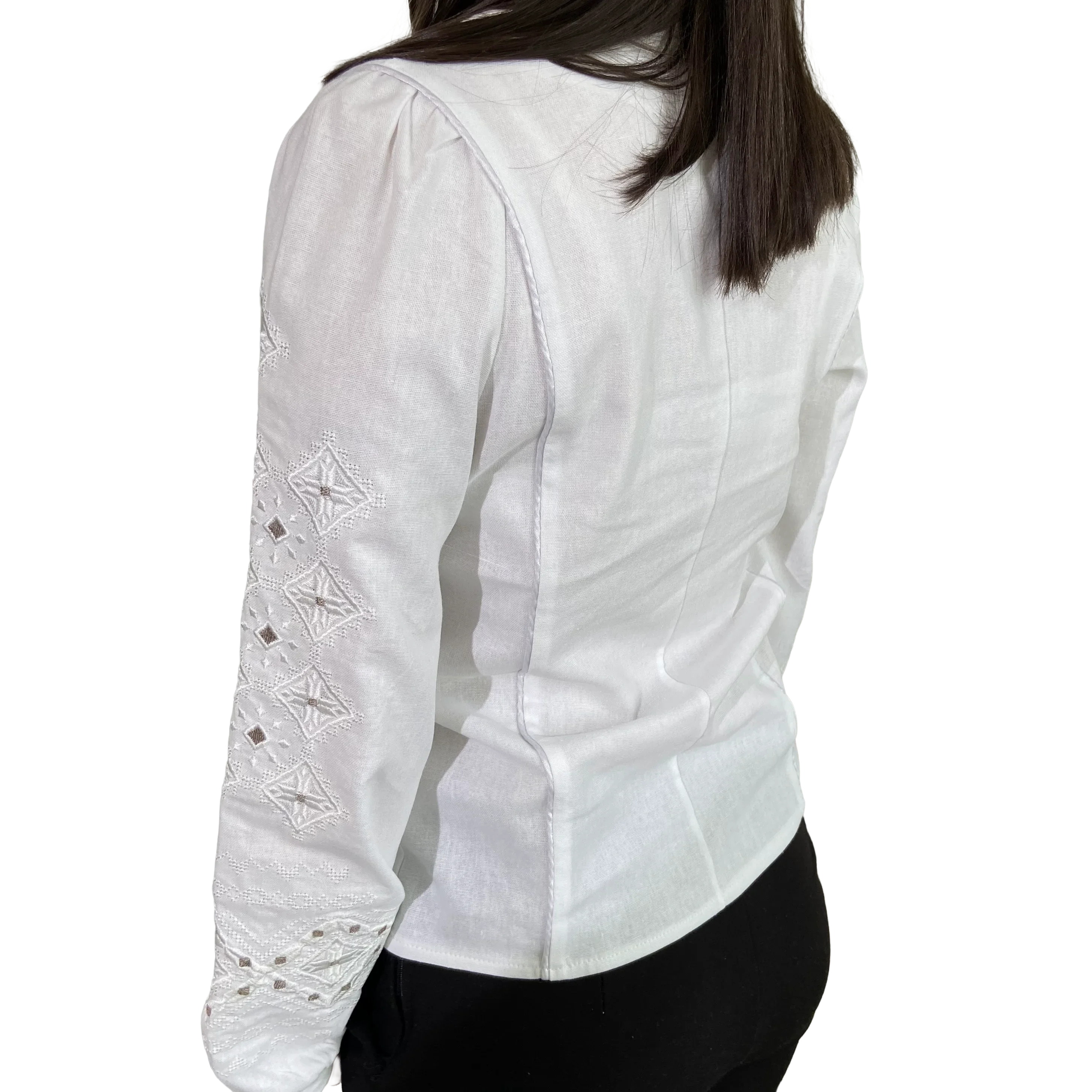 Блуза «Весняна» — це втілення жіночності та природної краси. Ця модель створена для того, щоб наповнювати ваші образи свіжістю, радістю та весняним настроєм. Тонка, майже невагома вишивка гладдю відтворює ніжні квіткові мотиви, що нагадують про перші весняні квіти. Це гарантує вишуканість та делікатність образу. Виконана з високоякісного льону, що забезпечує ідеальну посадку по фігурі та комфорт у будь-яку пору року. Натуральна тканина дозволяє тілу «дихати», даруючи відчуття свіжості та легкості. Прямий крій з коміром-стійкою, прикрашеним вишивкою, та вишукані манжети на ґудзиках підкреслюють жіночність та увагу до деталей у виробах.